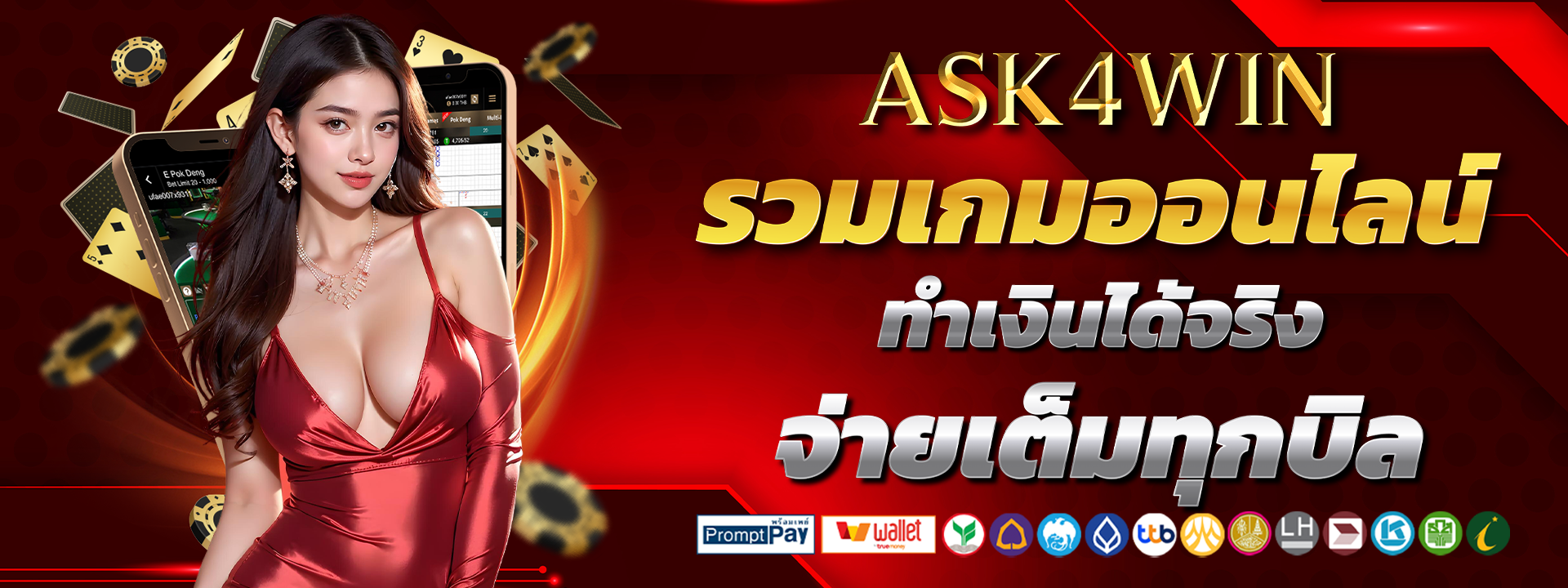 เล่นกับ ASK4WIN รวมเกมออนไลน์ ทำเงินได้จริง จ่ายเต็มทุกบิล ฝากถอน ไม่มีขั้นต่ำ